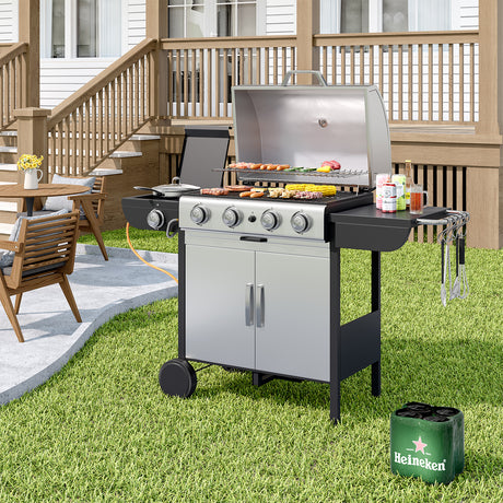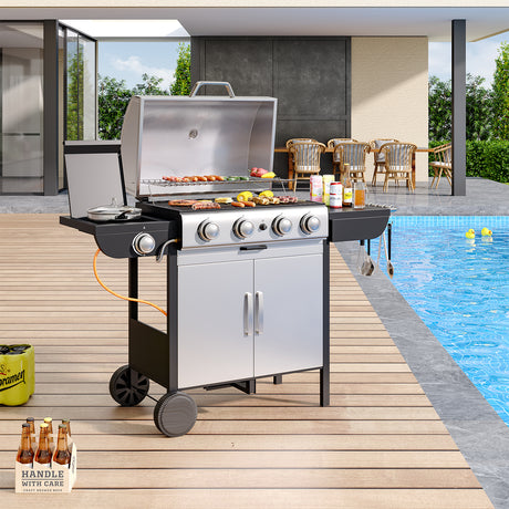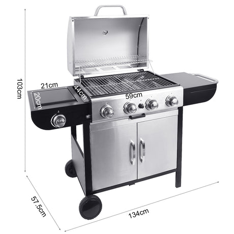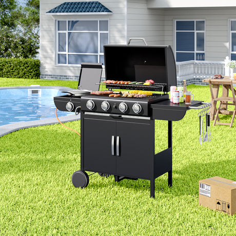 5-Burner Outdoor Gas Barbecue Grill with BBQ Seasoning Table