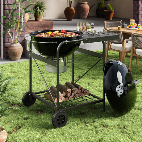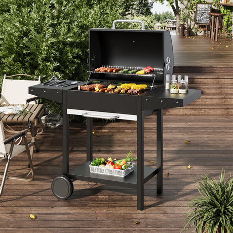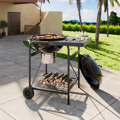 Cart-Style Charcoal BBQ Grill with Build-in Grill Rack