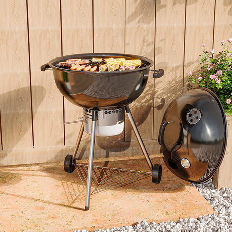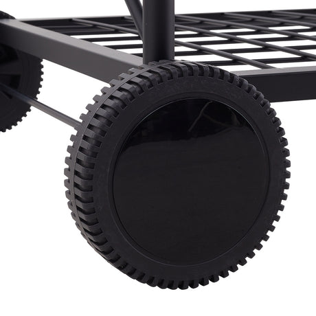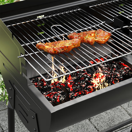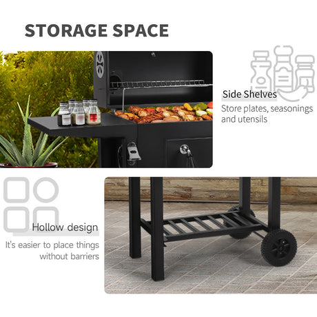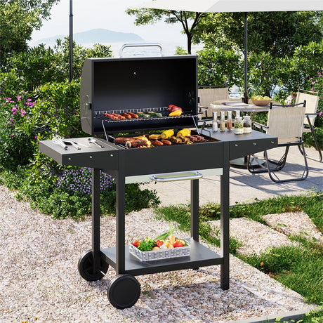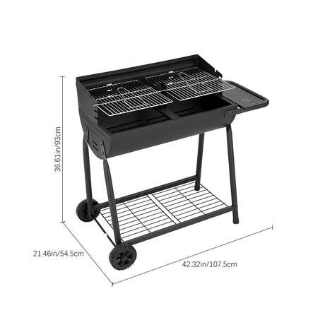 Outdoor Garden Charcoal BBQ Grill with Adjustable Trays and Wheels