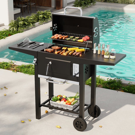 Premium Outdoor Charcoal BBQ Grill with Side Tables
