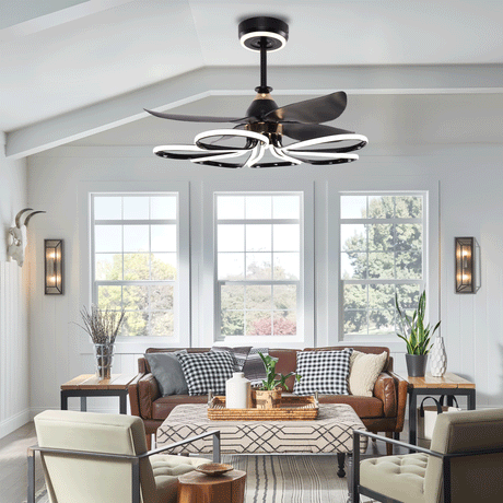 Modern Black Ceiling Fan with Lights and Remote Control