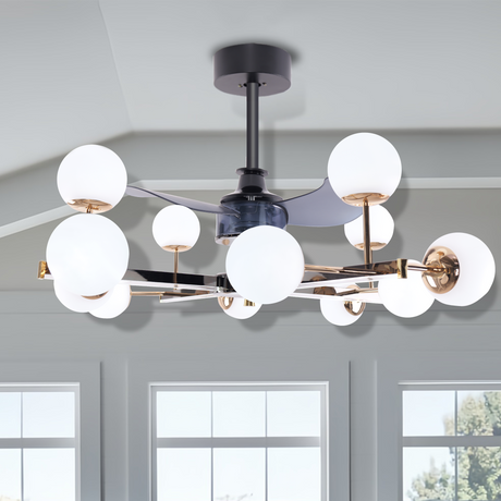 Modern Sphere 3-Blade Fan Light with Black & Gold Finish