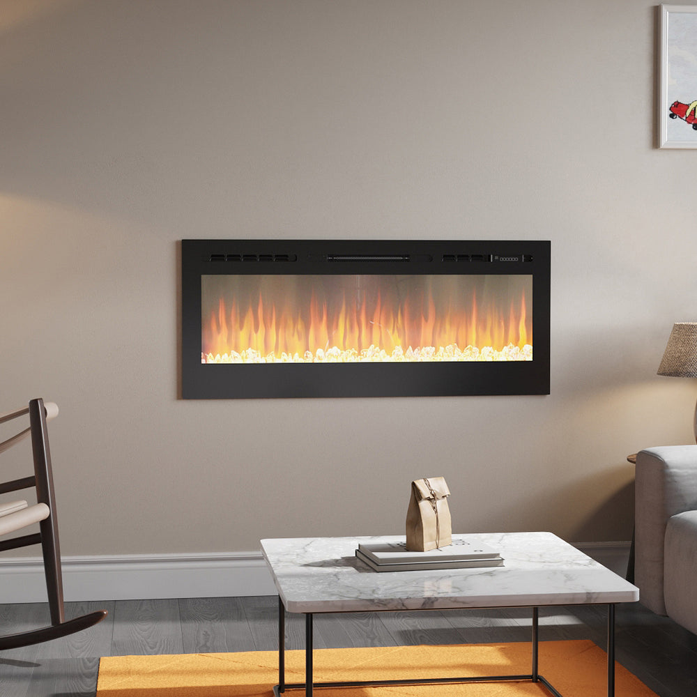 36/40/50/60inch Built-in Electric Fireplace with LED Display, Realistic Flame Effect with Logs and Crystal