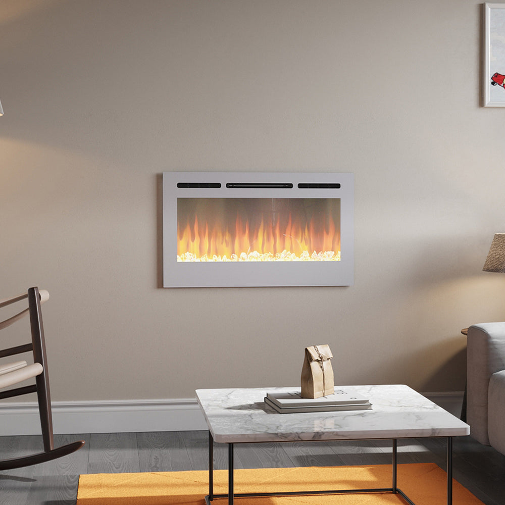 36/40/50/60inch Built-in Electric Fireplace with LED Display, Realistic Flame Effect with Logs and Crystal - white / 60inch is backordered and will ship as soon as it is back in stock.